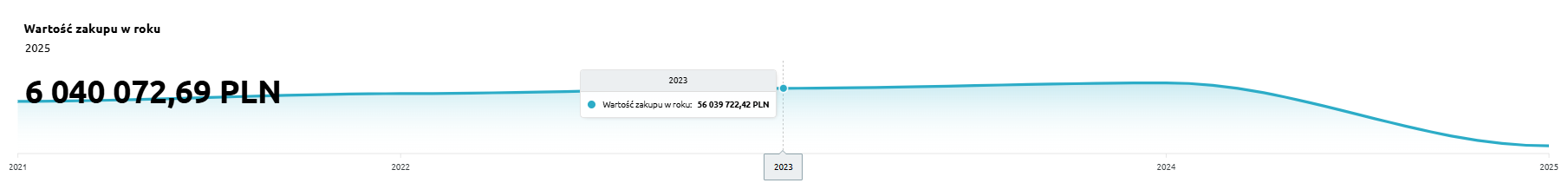 Dzięki temu wykresowi użytkownik może łatwo zidentyfikować trendy w kosztach zakupowych i ocenić, czy wydatki są stabilne, czy też podlegają większym wahaniom.