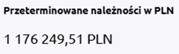 „Przeterminowane należności w PLN” – pokazuje część nierozliczonych należności, których termin płatności już upłynął. Wszystkie wartości zostały przeliczone do PLN według kursu z dnia poprzedniego, co zapewnia jednolitą prezentację niezależnie od waluty dokumentu.