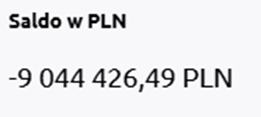 „Saldo w PLN”–pokazujesaldo przeliczone na złotówki, -