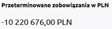 Przeterminowane saldo w PLN – różnica pomiędzy należnościami a zobowiązaniami, biorąc pod uwagę tylko wartości przeterminowane.