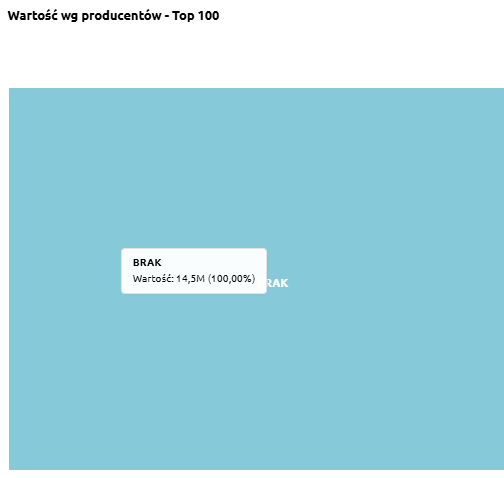 „Wartość wg producentów – Top 100” – wykres przedstawia 100 producentów o najwyższej wartości zapasów magazynowych.