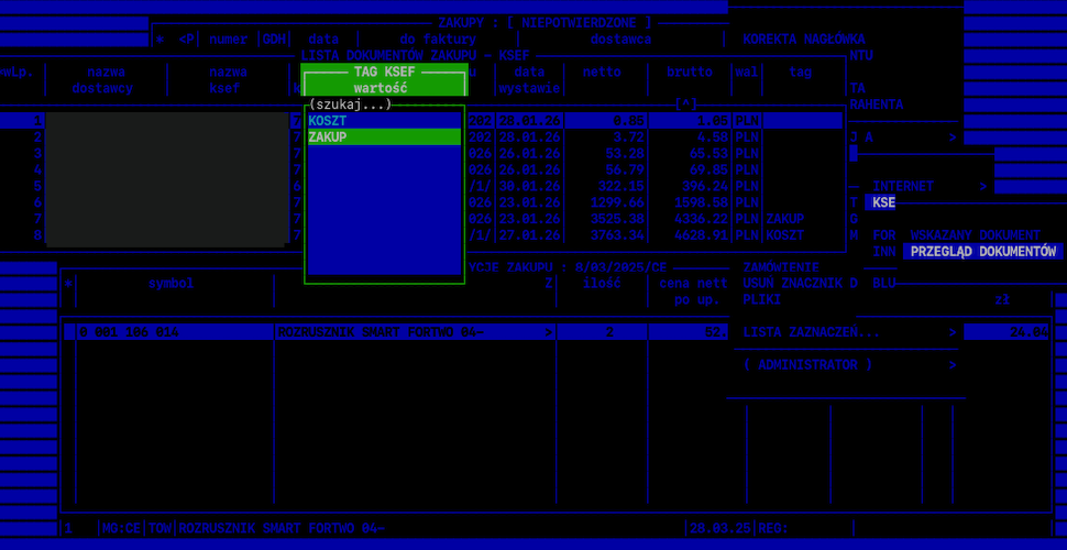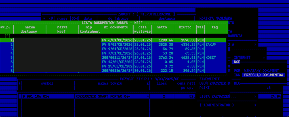 Lokalizacja w programie:FL5 > ZAKUPY > ZAKUPY > [→] > IMPORT > KSEF > PRZEGLĄD DOKUMENTÓW.