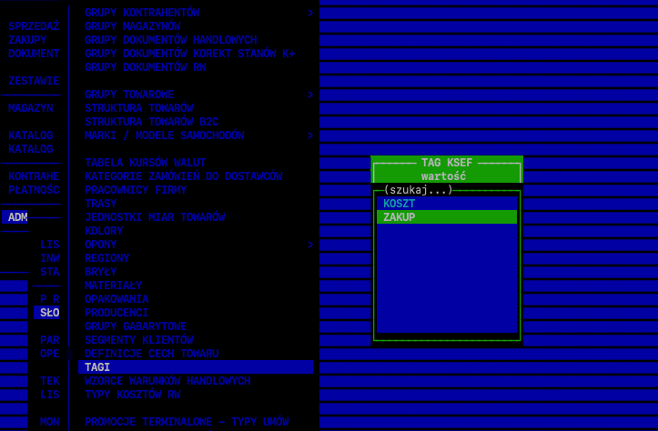 Działanie: Dodaj nowe nazwy tagów, które będą dostępne w całym systemie.