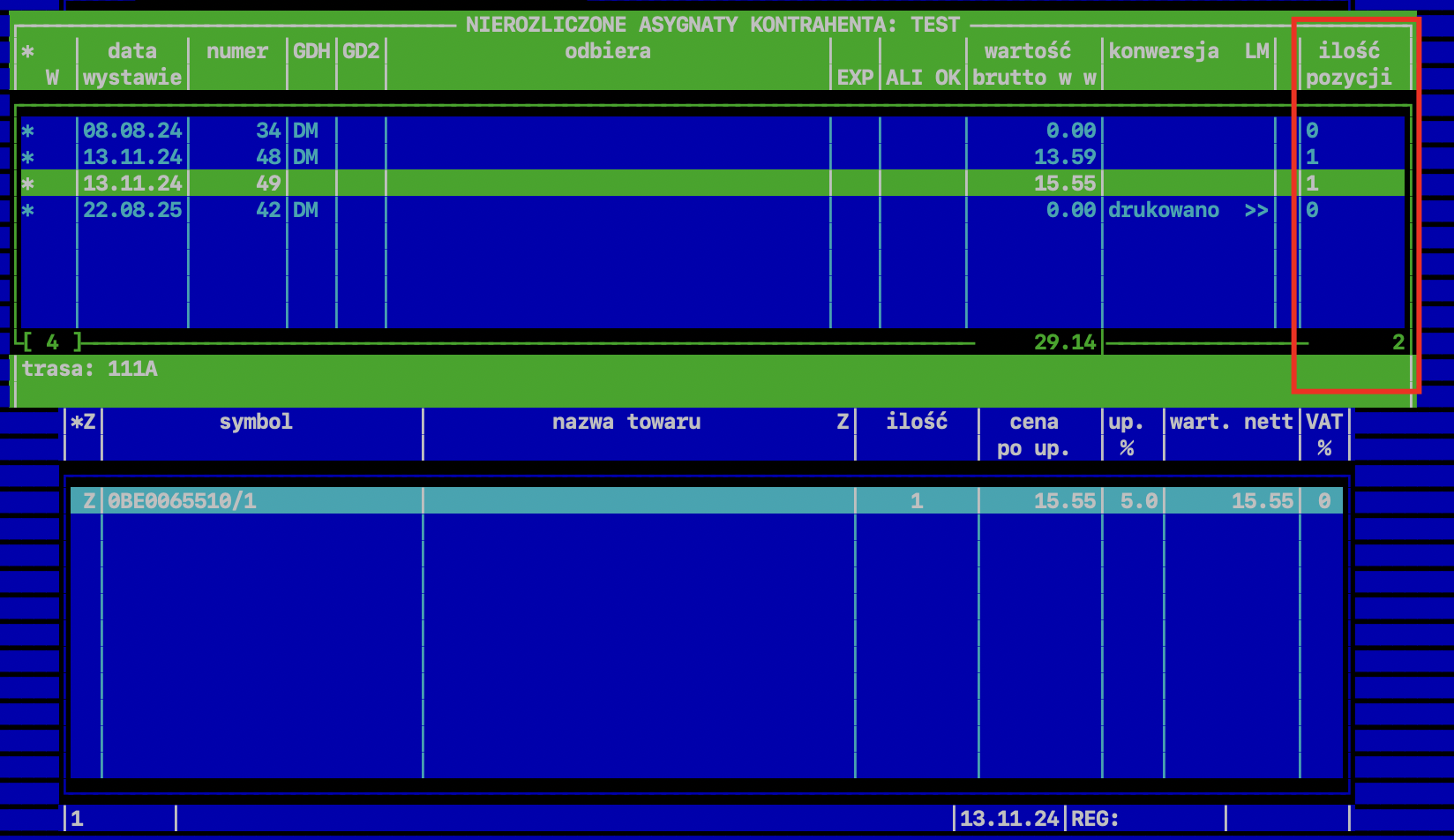 Weryfikacja ilości pozycji odbywa się w następujących miejscach systemu: